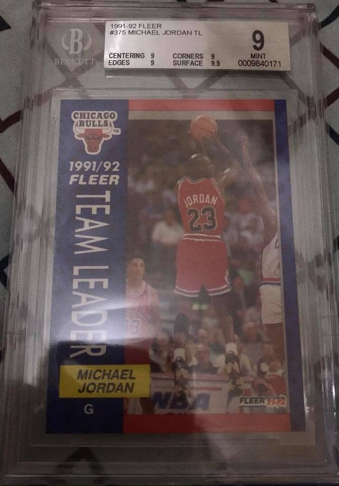 Michael Jordan 1991 BGS 9 FLEER #375 TEAM LEADER, Hobbies & Toys, Memorabilia & Collectibles michael jordan fleer team leader