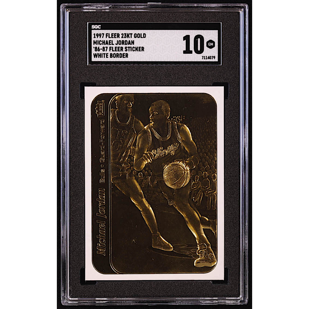 Michael Jordan 1997 Fleer 23KT Gold White Border / '86-87 Fleer Sticker (SGC 10) | Pristine Auction michael jordan 87 fleer sticker
