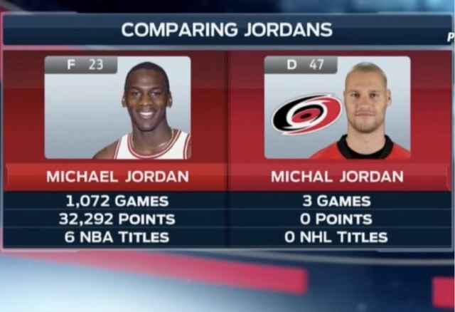 COMPARING JORDANS MICHAEL JORDAN MICHAL JORDAN 1,072 GAMES 3 GAMES 32,292 POINTS O POINTS 6 NBA michael jordan vs dr j