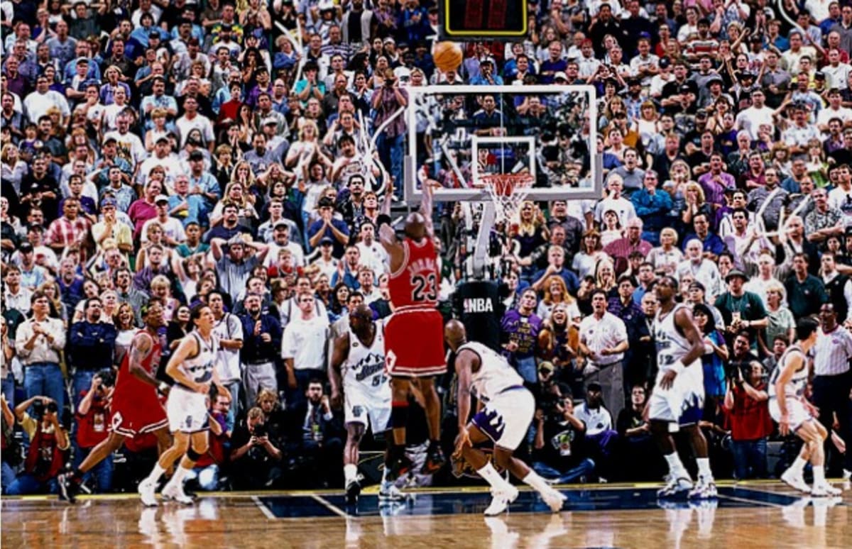 Michael Jordan Never Let Bryon Russell Forget Forget His Famous Crossover, Even When They Were michael jordan push off bryon russell