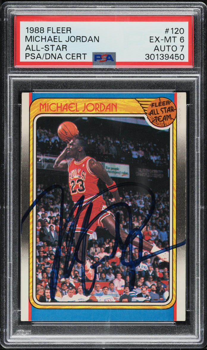 1988 Fleer Basketball Michael Jordan ALL-STAR AUTO DNA 7 #120 PSA 6 EXMT - Weekly Sunday Auction michael jordan fleer all star team card 1988