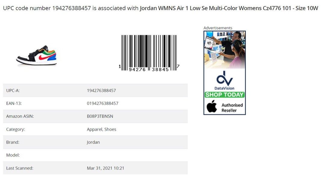 Nike Air Jordan 1 Low SE Multi-Color Size 42 Barcode 194276388457 on Carousell qr code jordan 1