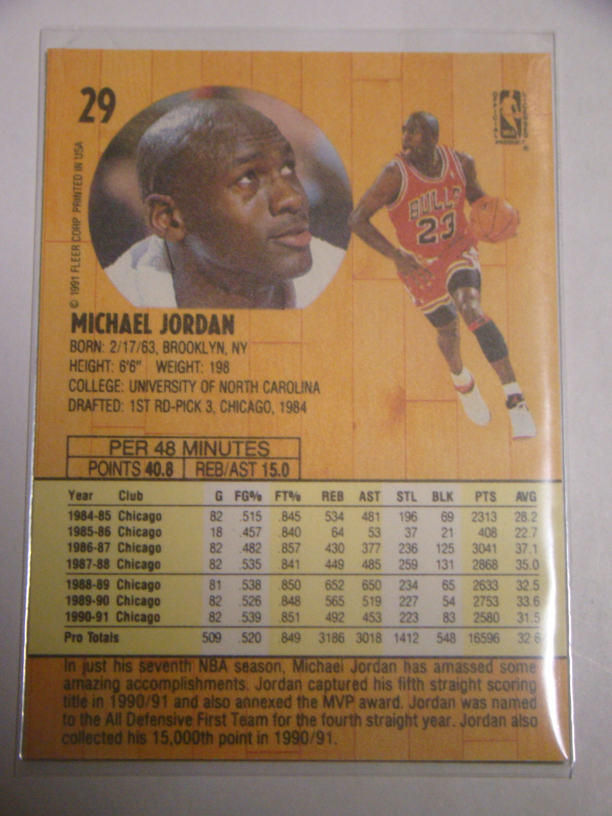 1991 FLEER - MICHAEL JORDAN - Card #29 - Sports Trading Cards how much is a 1991 fleer michael jordan card worth
