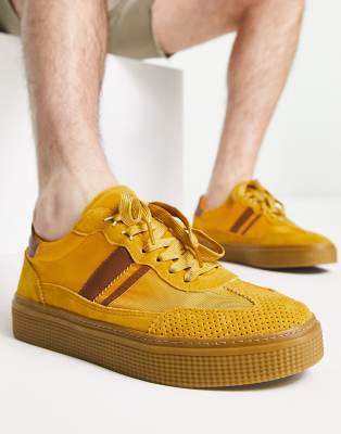 Asos Design Chunky Retro Sneakers In Mustard Suedette With Gum Sole-yellow | ModeSens chunky retro sneakers