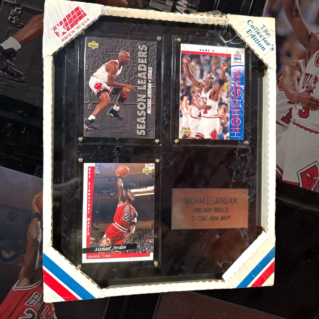 Michael Jordan Chicago Bulls Three Time NBA MVP Upper Deck Cards Plaque (3 card) michael jordan bulls card