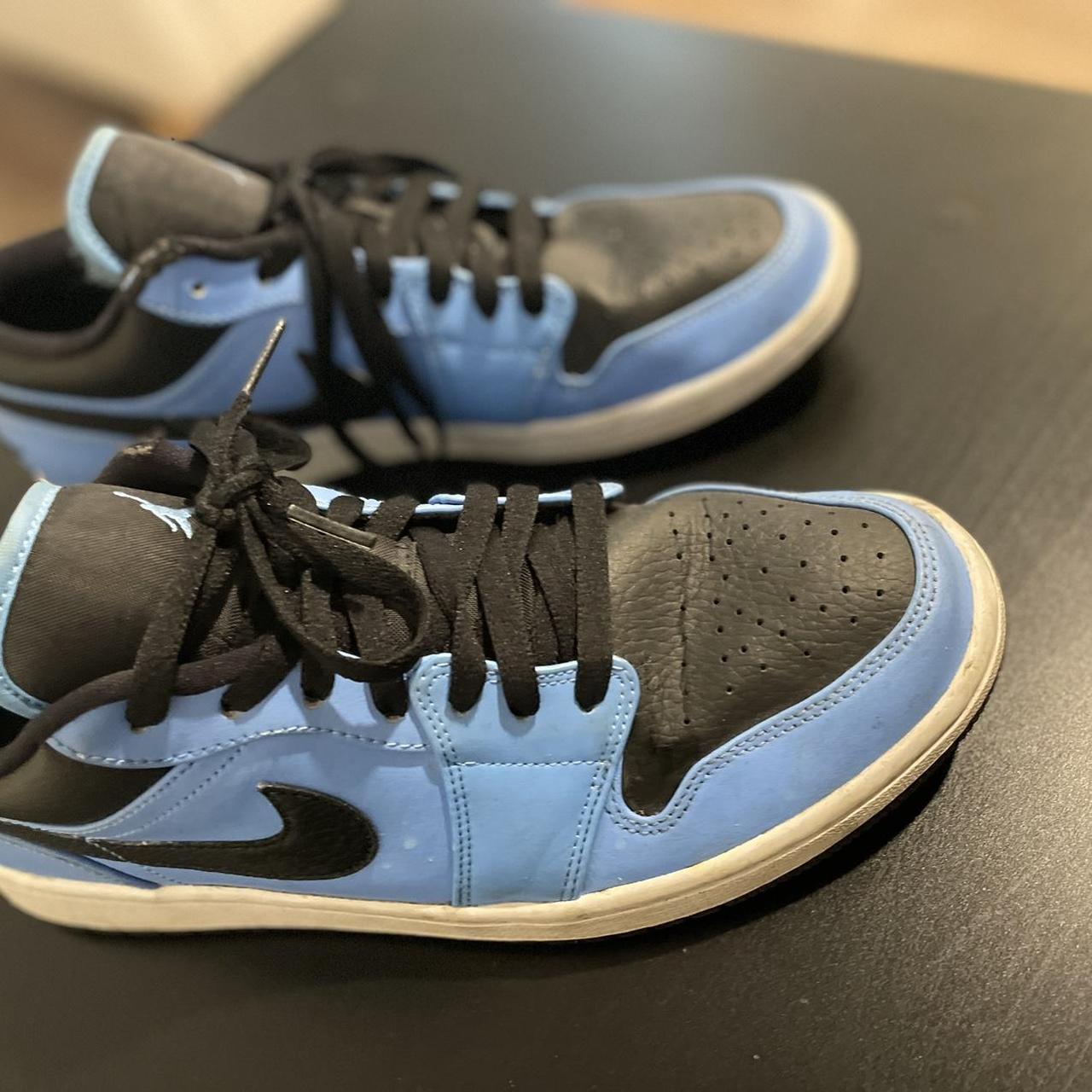 Jordon 1s low University Blue. Size 10 men. Small - Depop jordon 1s grey