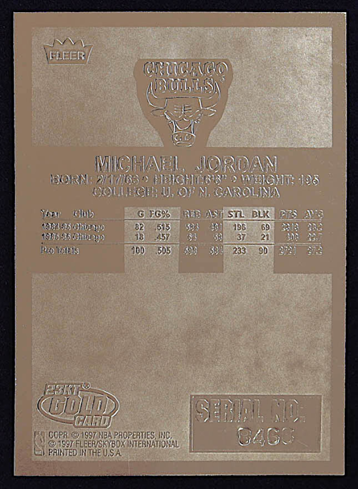 Michael Jordan 1997 Fleer Premier Signature Series Holo Prism Refractor 23Kt Gold Card michael jordan fleer premier