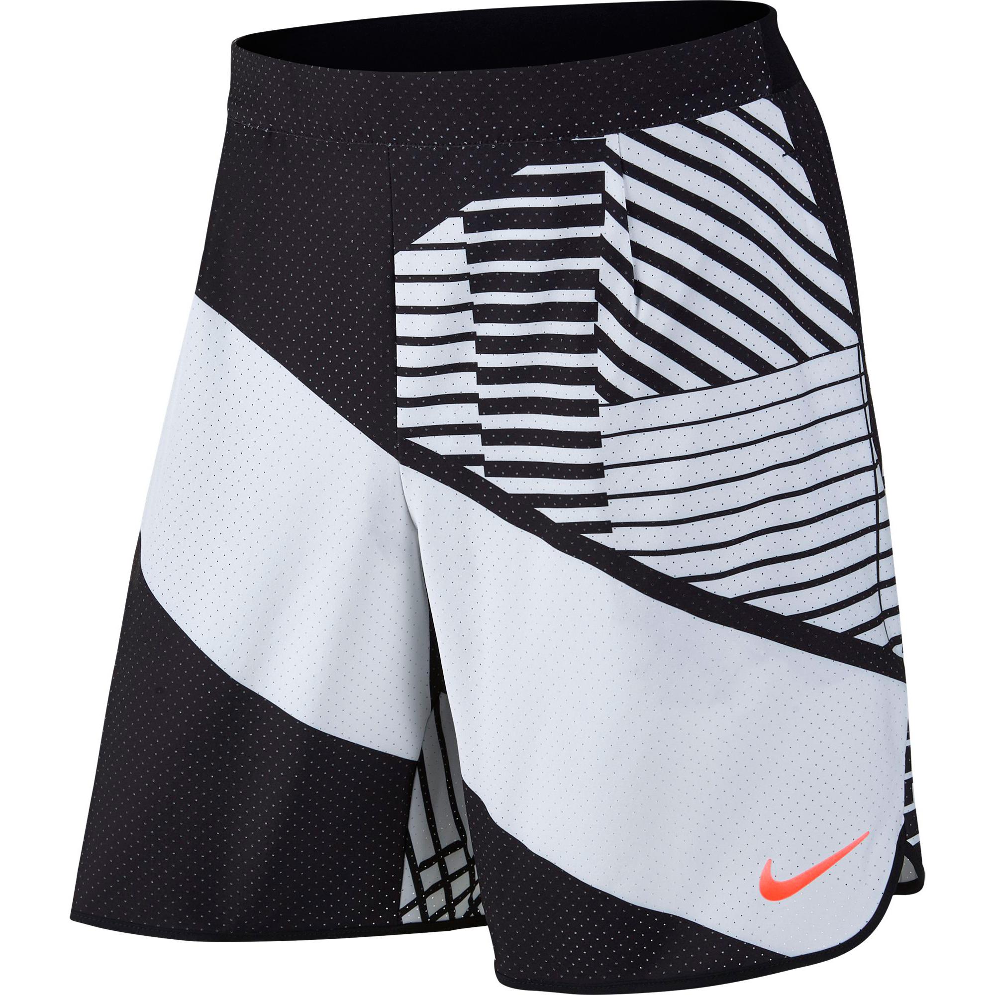 Nike Mens Flex 9 Inch Tennis Shorts - White/Black - Tennisnuts.com mens white nike tennis shorts