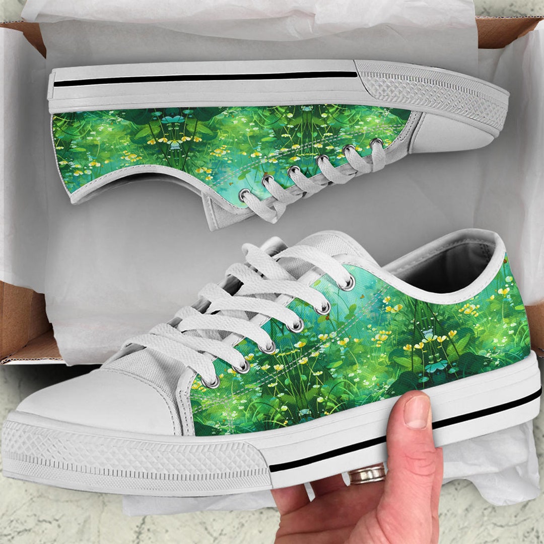 Shamrock Meadows Low Top Sneakers, Ladies Casual Shoes Birthday Gifts for Her Painted Sneakers shamrock sneakers nike