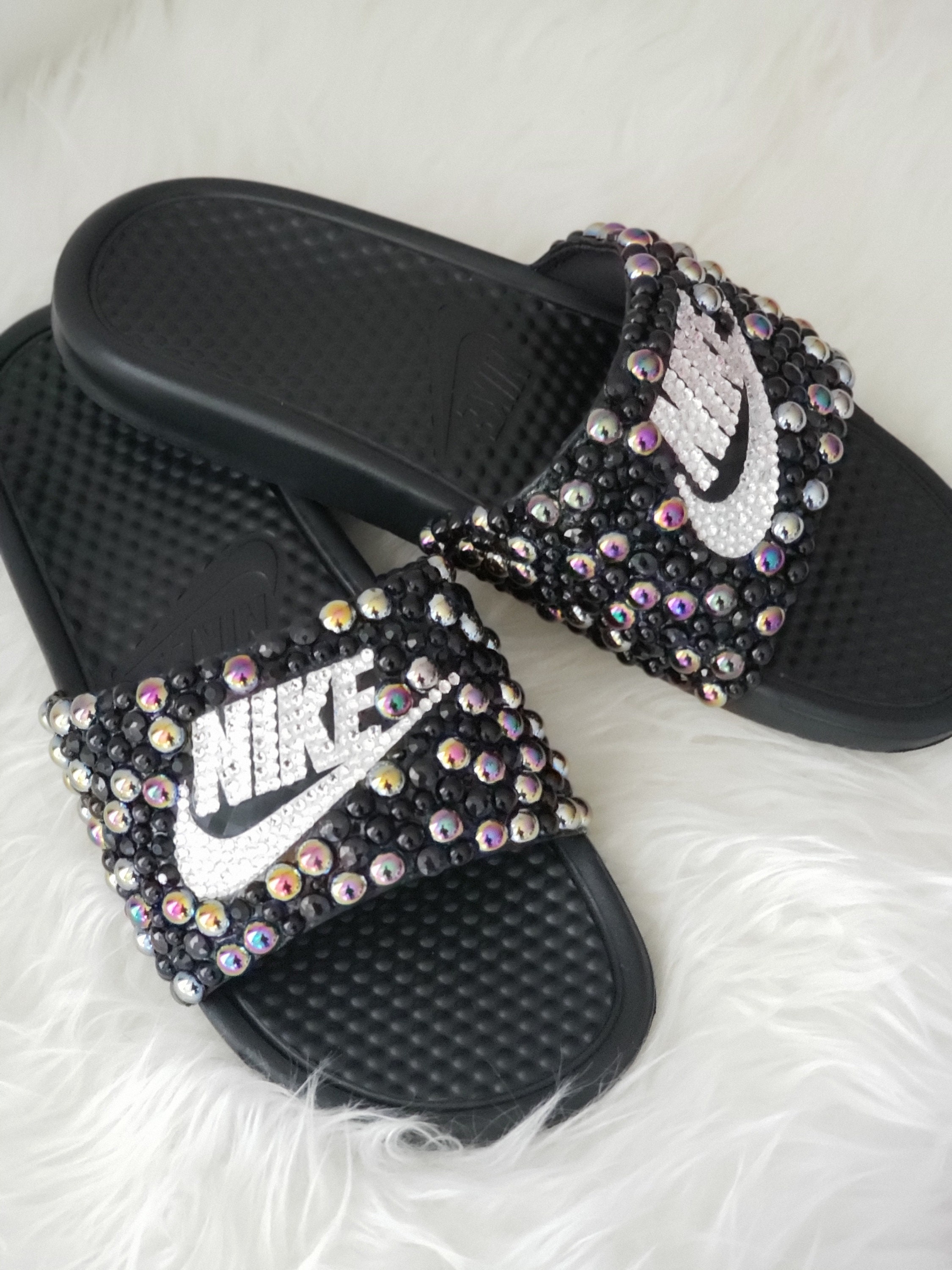Nike Print Women's Nike Slides Bedazzled Bling Nike JDI - Etsy | Glitter sandals, Nike slides