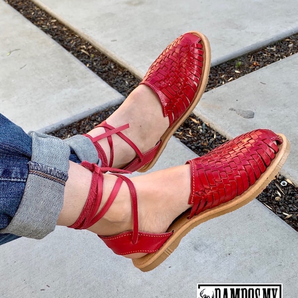 Womens Mexican Sandals, Handmade Leather Lace up Sandals Huaraches, Sandalias Huaraches mexican lace up sandals