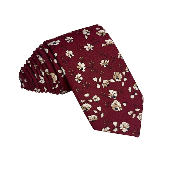 Burgundy Floral Tie Mens Red Wine Tie Dark Red Necktie Red Burgundy Wedding Tie Groomsmen Tie mens burgundy floral tie