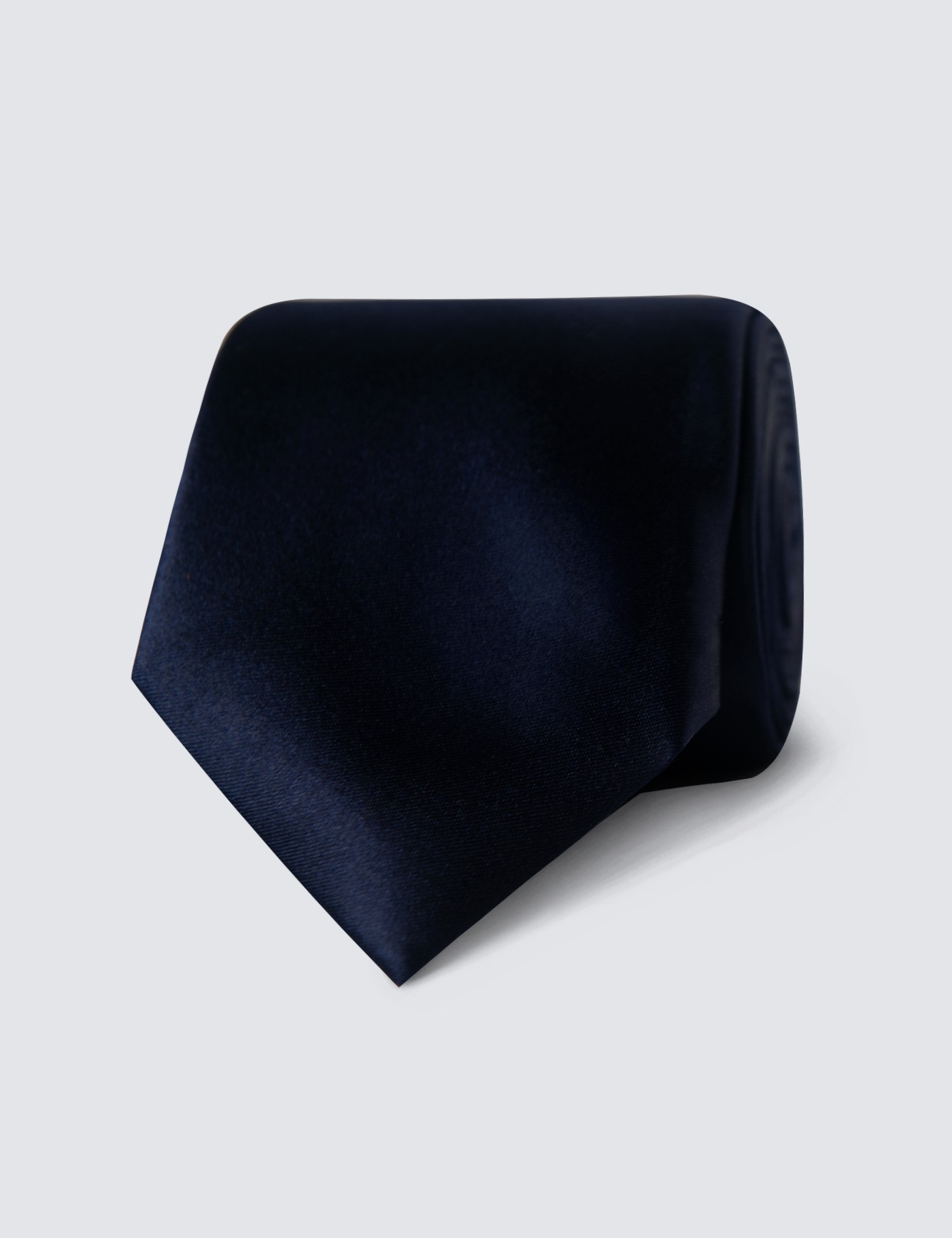 Men's 100% Silk Plain Navy Slim Tie | Hawes and Curtis | UK mens navy slim tie