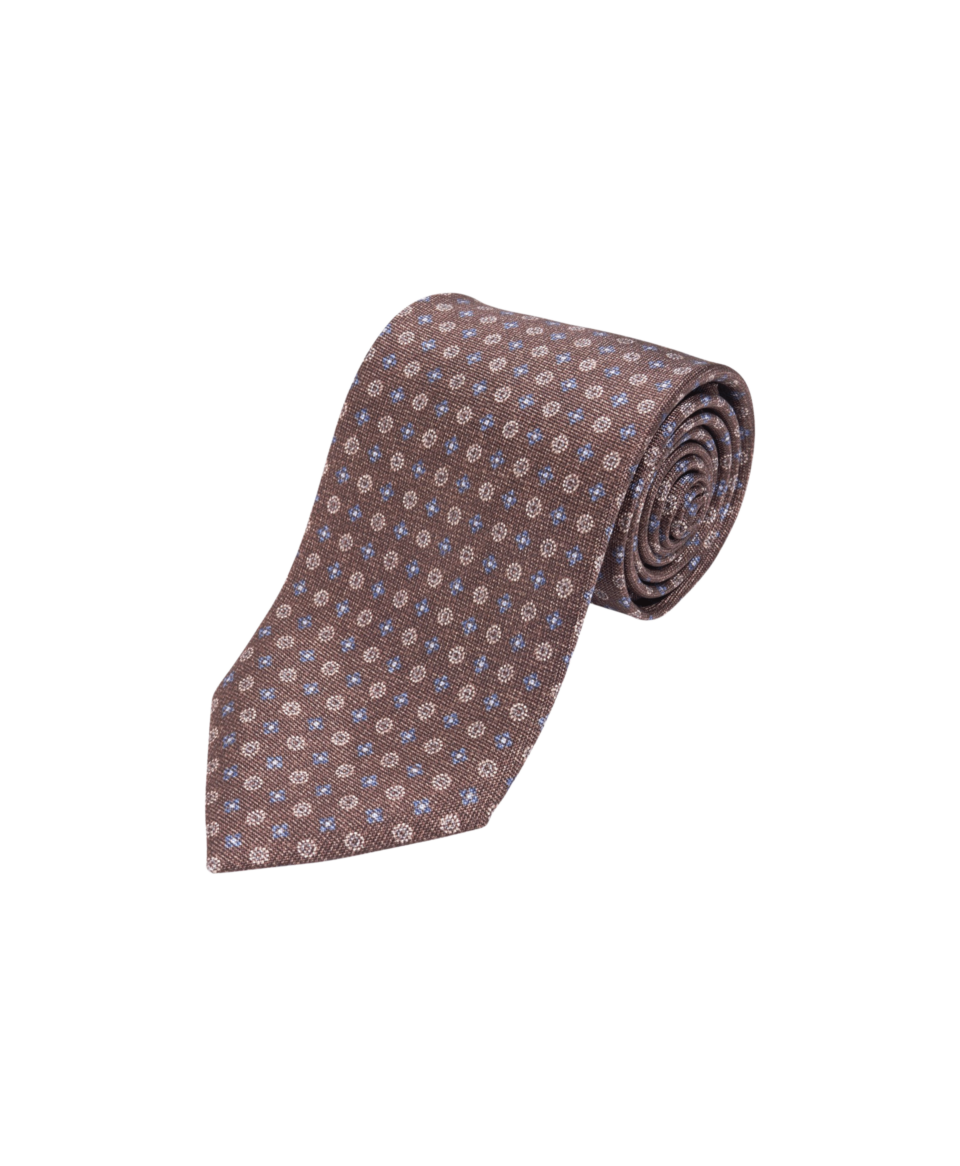Brown With Blue And Tan Medallion Silk Necktie | He Spoke Style medallion necktie