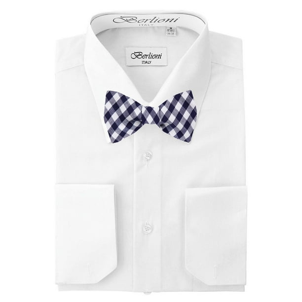 Berlioni - Men's White Solid Dress Shirt and Self Tie Bow Tie - Walmart.com - Walmart.com mens white shirt with bow tie