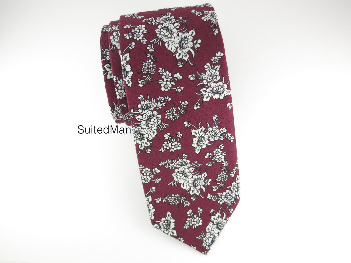 Cream and Burgundy Floral Tie Slim Necktie Custom Tie - Etsy burgundy suit floral tie