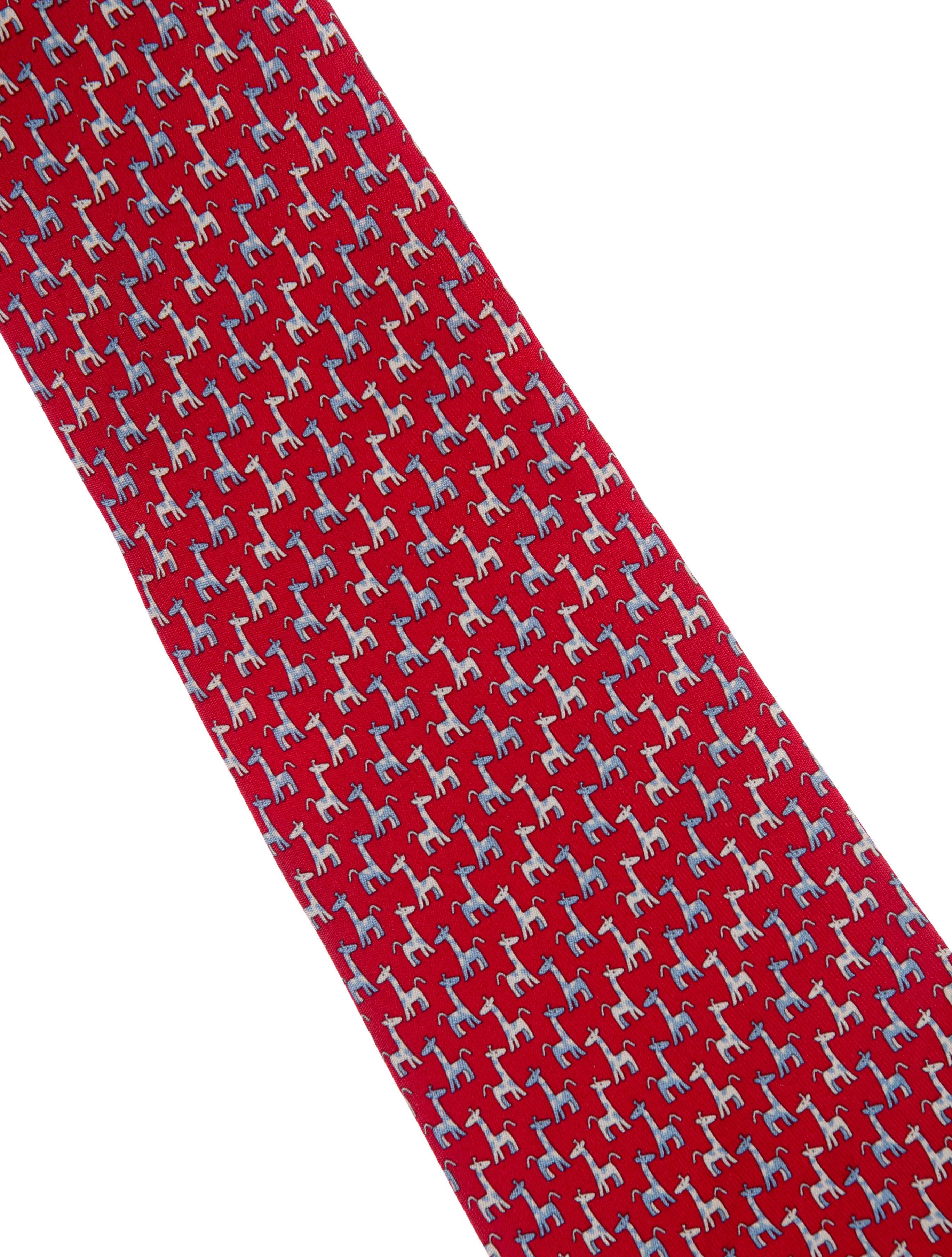 Men's red and creme Salvatore Ferragamo giraffe print silk tie. ferragamo giraffe tie