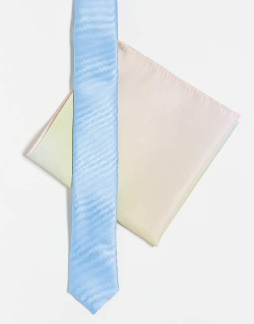 ASOS DESIGN skinny tie in blue with ombre rainbow pocket square | ASOS asos blue tie