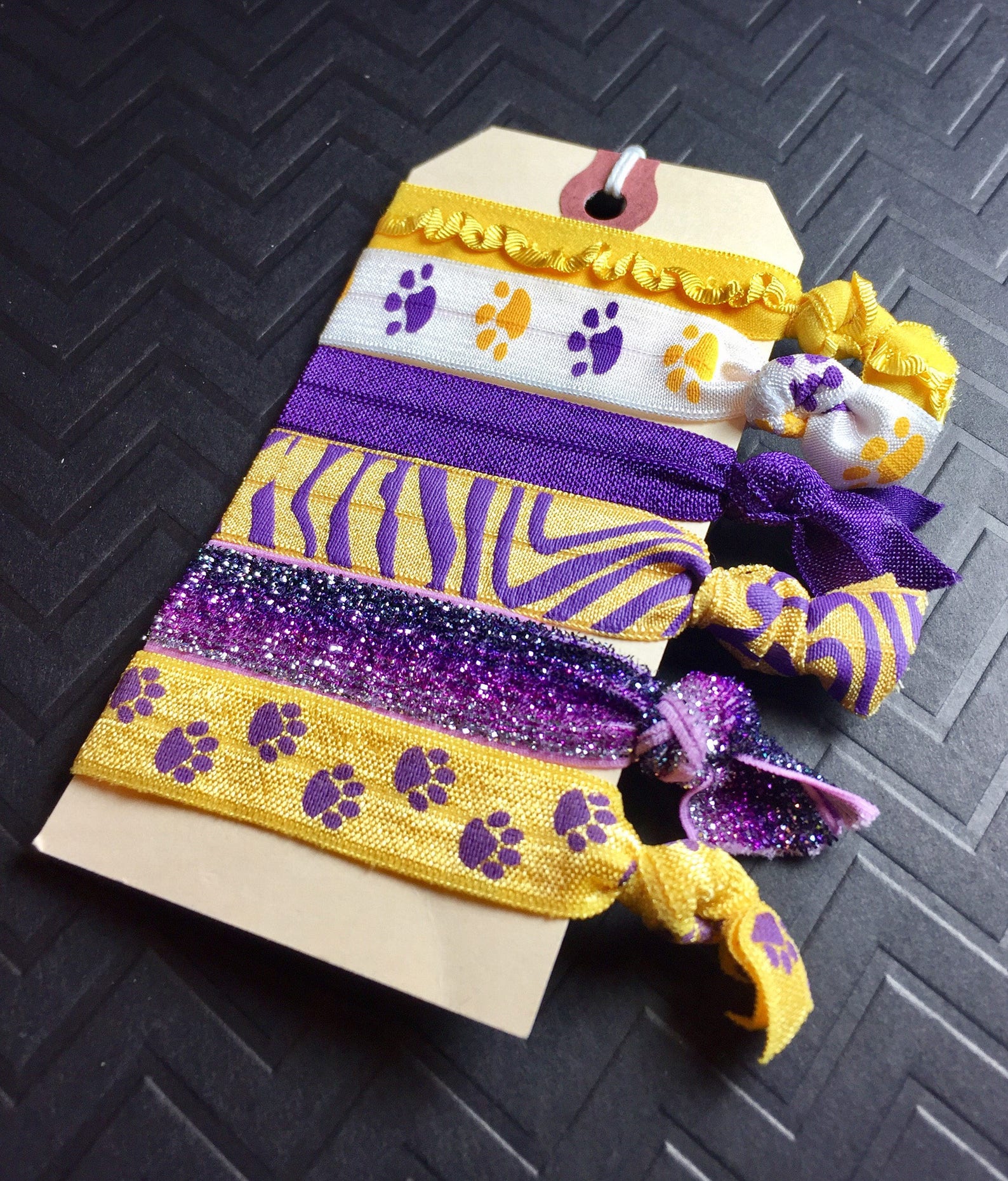 Purple and Golden Yellow Hair Tie Set With Paw Prints Tiger - Etsy purple yellow tie