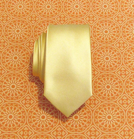 Mens Tie Pale Gold Yellow Silk Skinny Necktie With Matching | Etsy pale gold tie