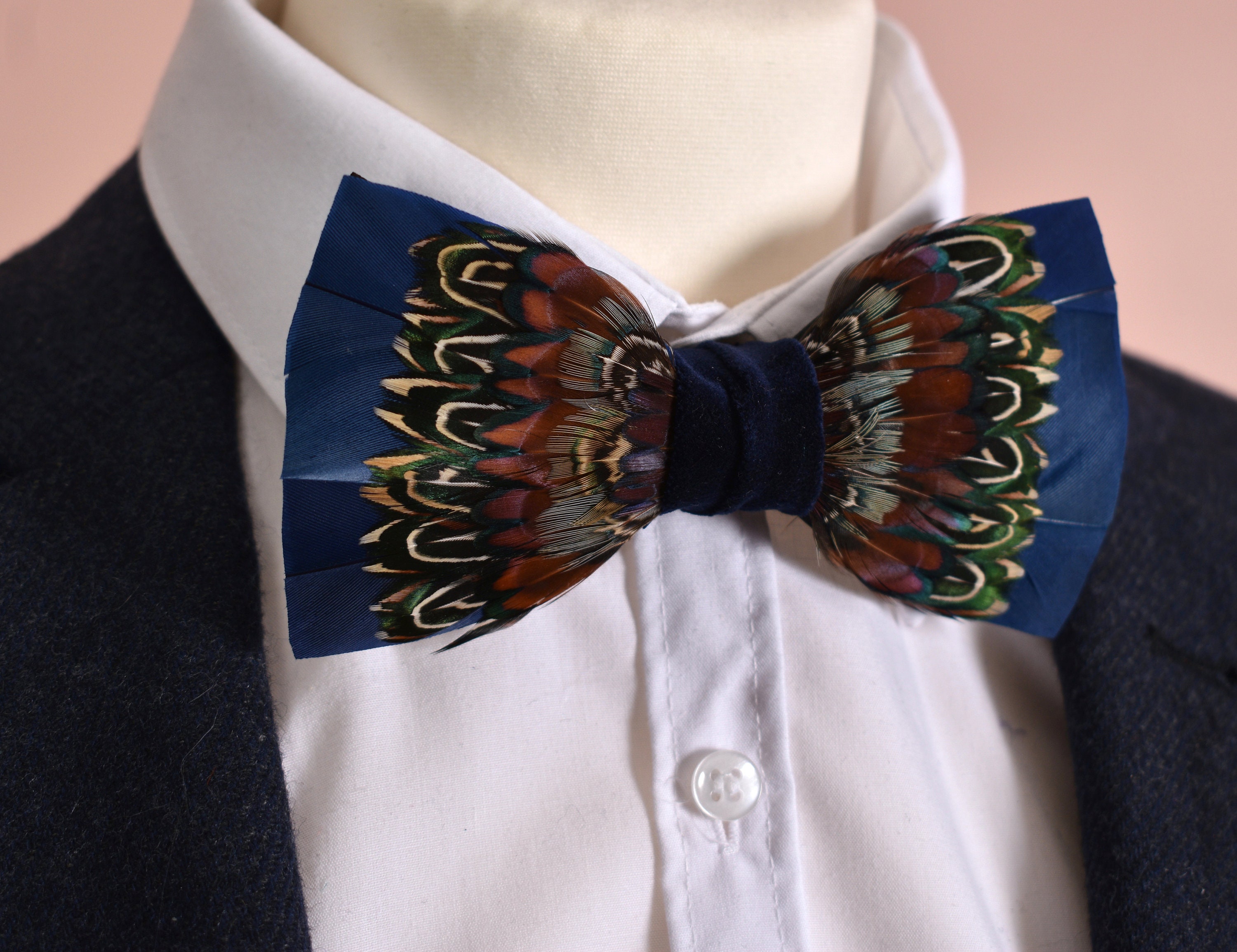 Pheasant Feather Bow Tie in Navy Blue and Copper Pheasant | Etsy navy pheasant tie