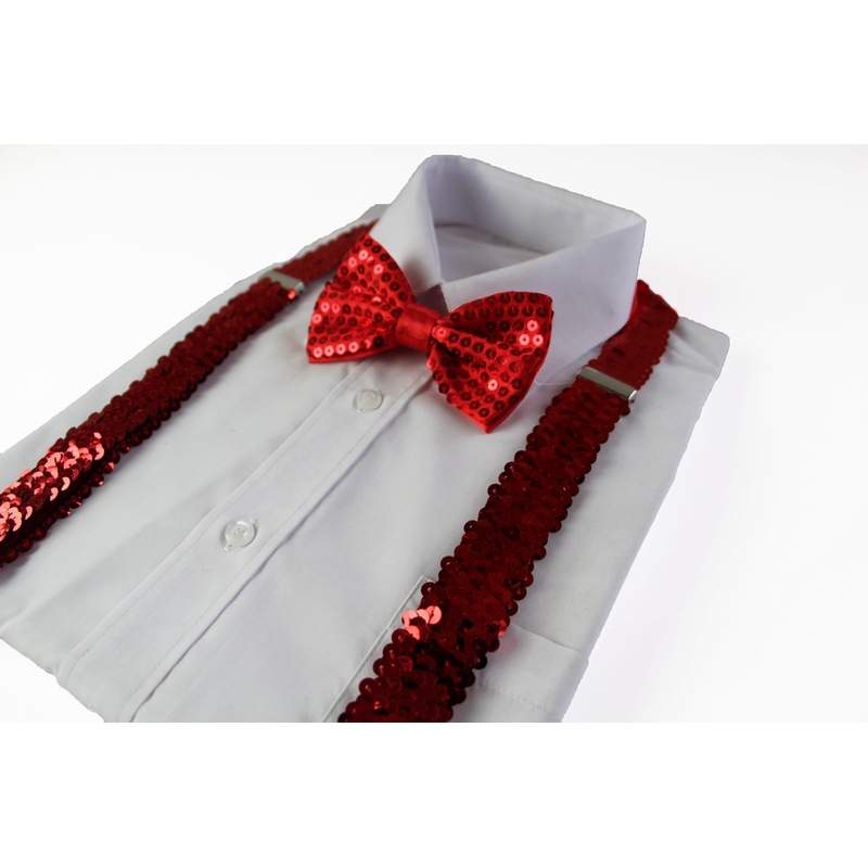 Buy Mens Red Sequin Patterned Suspenders & Bow Tie Set - MyDeal sequin bow tie and suspenders