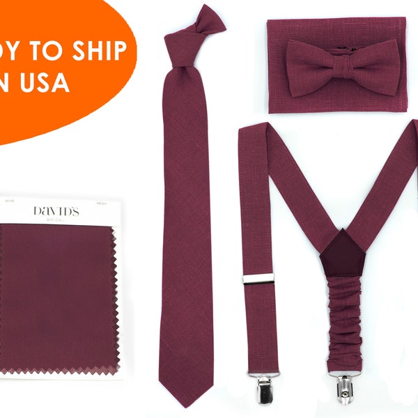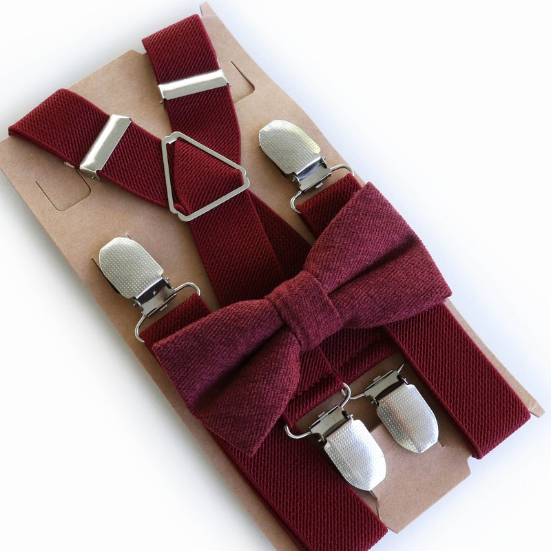 Burgundy Suspenders and Bow Tie - Etsy burgundy bow tie and suspenders wedding