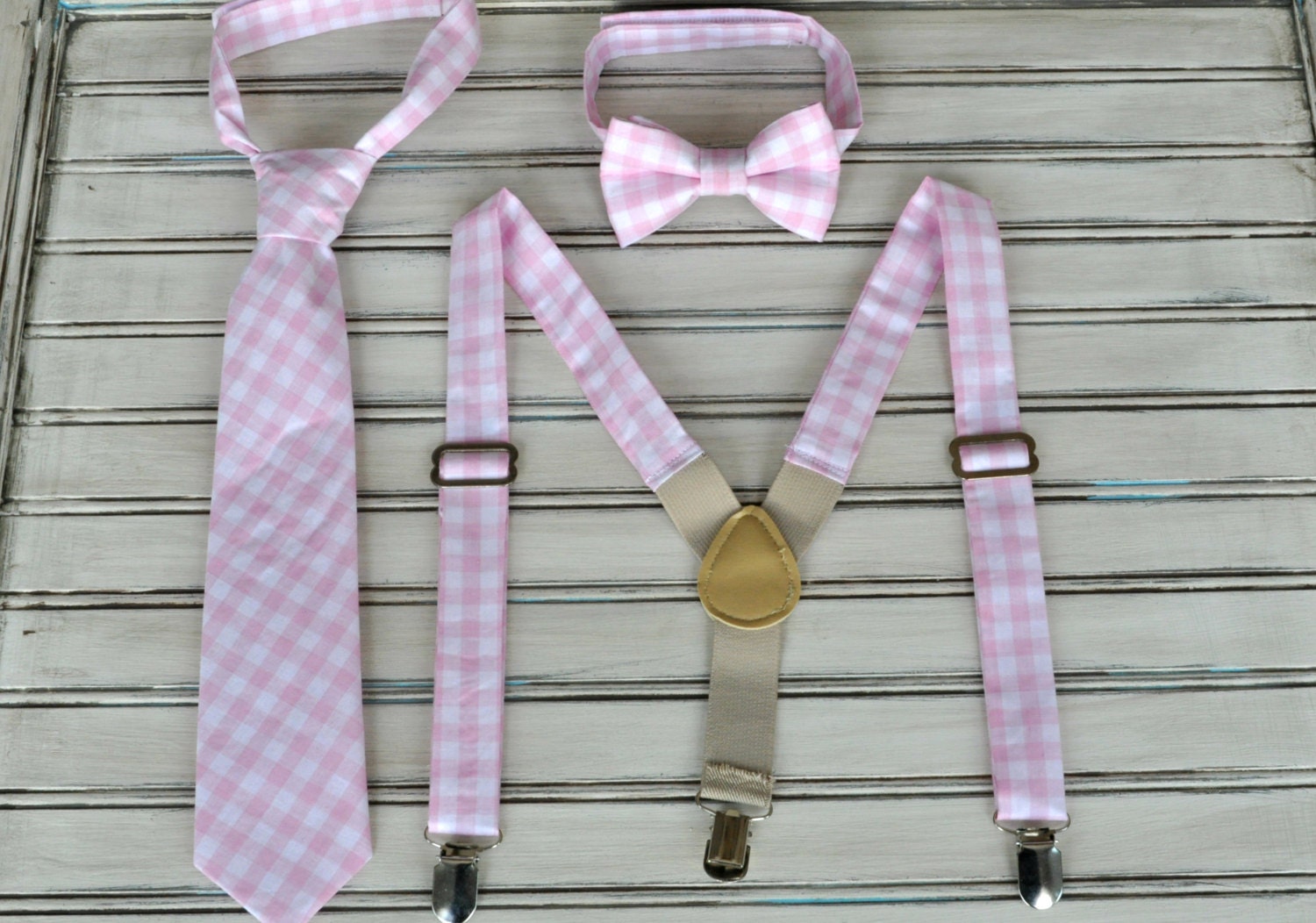 Pink Gingham Bow Tie and Suspenders Regular Tie or Bow Tie mens pink bow tie and suspenders