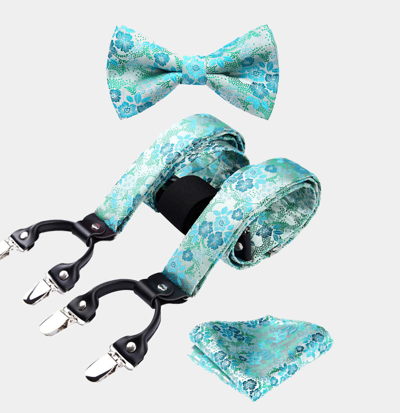 Turquoise Floral Bow Tie And Suspenders Set - Gentleman's Guru suspenders bow tie set