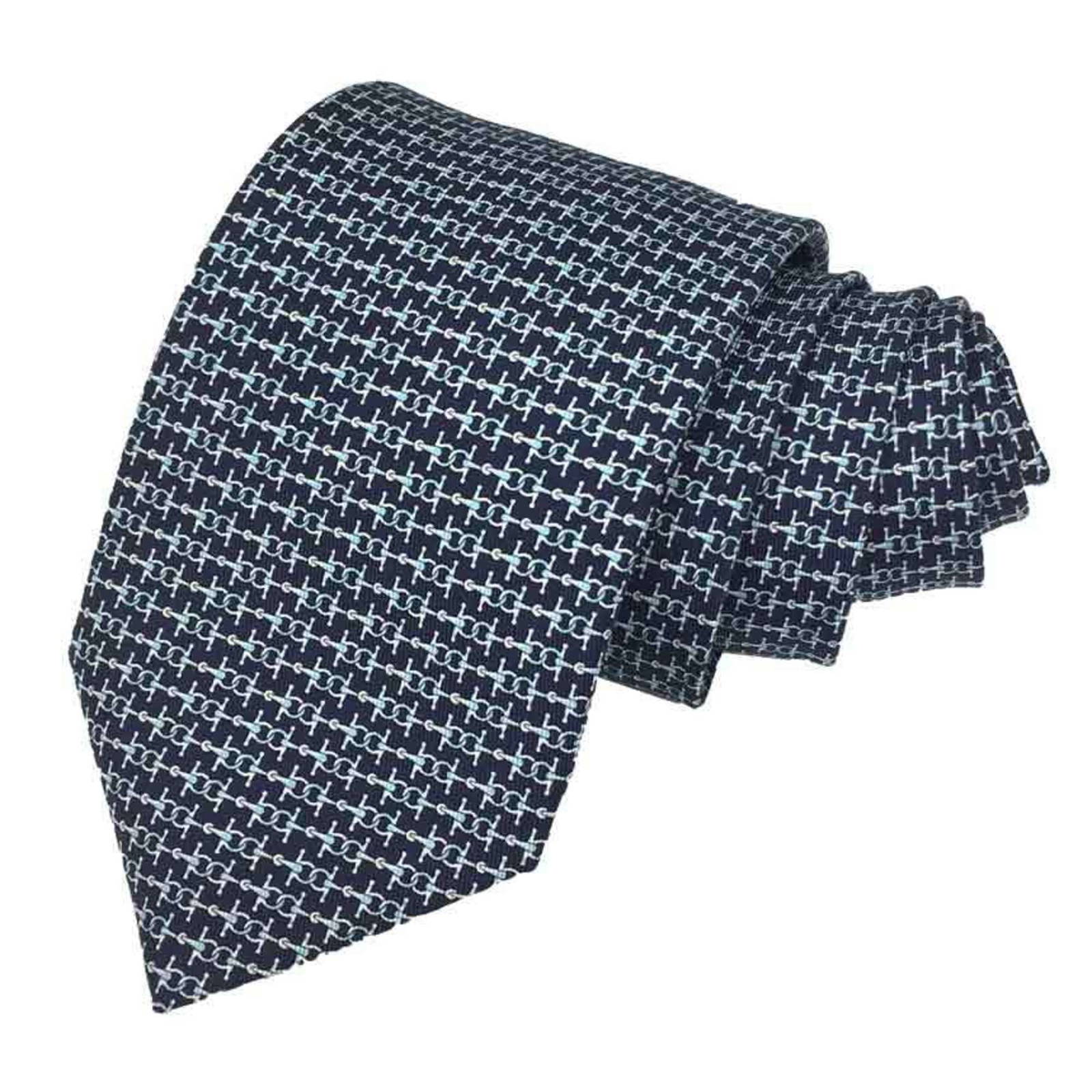 Hermes Tie Silk Twill Bit Pattern Harness Cravate Twill Tie 8 Hand In Marine/ciel Navy Men's Auction cravate twill hermes tie