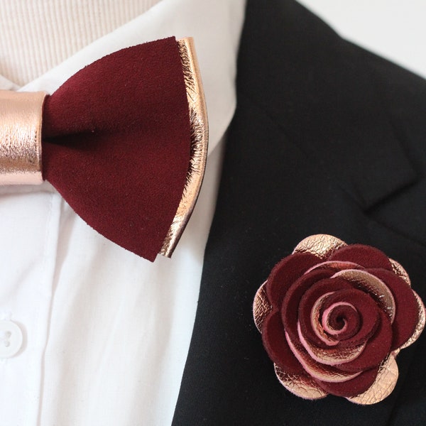 Rose Gold Bowtie Set Burgundy Bow Tie Set Burgundy With - Etsy burgundy gold bow tie