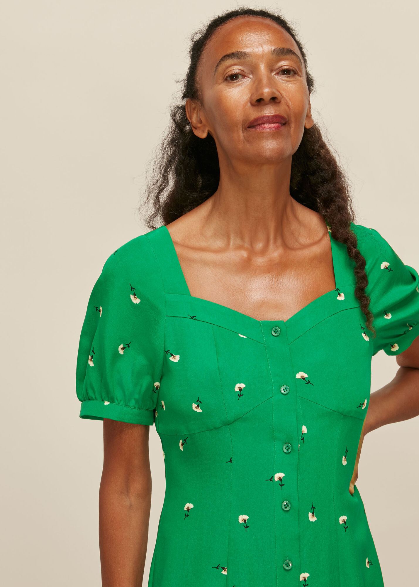 Green/Multi Romantic Floral Print Dress | WHISTLES | Whistles UK gish green romance floral print tie neck silk dress