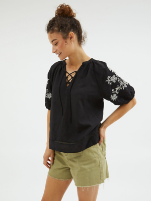White Embroidered Tie Neck Tunic | Women | George at ASDA thin black tie asda