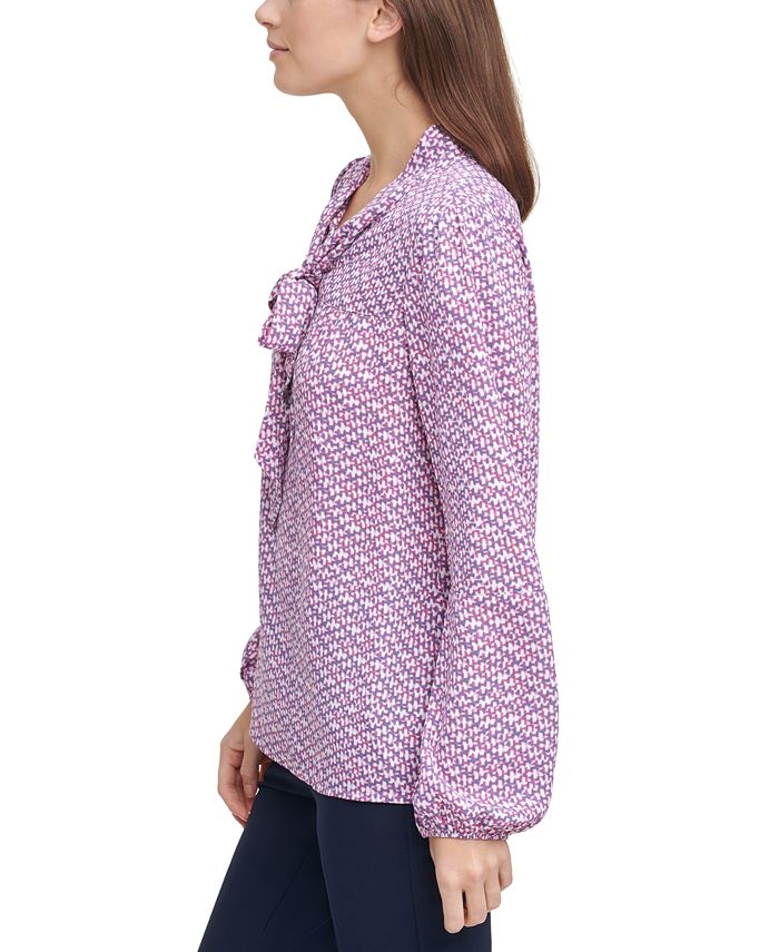 DKNY Tie-Neck Printed Top & Reviews - Tops - Women - Macy's dkny tie