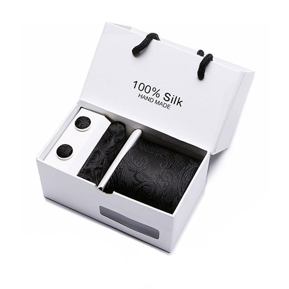 Men Fashion New 2019 Design Tie Set with Gift Box Jacquard Woven Gravata Silk Tie Hanky mens tie gift set