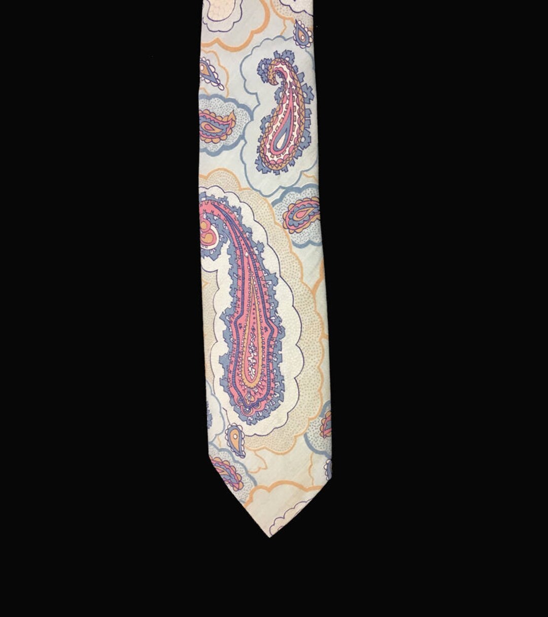 70's Wide Paisley Vintage Tie, 70s Tie, Wide Tie, Mod Tie, Blue Yellow Pink Tie, Vintage Necktie 70s tie