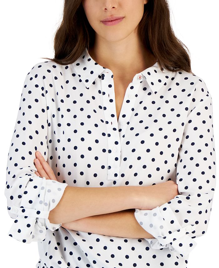 Tommy Hilfiger Women's Polka-Dot Tie-Hem Popover Shirt - Macy's tommy hilfiger polka dot tie