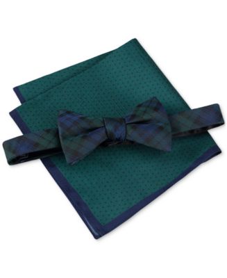 Tommy Hilfiger Men's Holiday Plaid Bow Tie & Polka Dot Pocket Square Set - Macy's tommy hilfiger polka dot tie