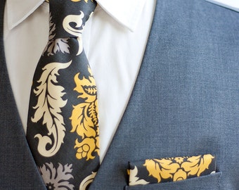 Necktie, Neckties, Mens Necktie, Neck Tie, Floral Neckties, Groomsmen Necktie, Ties, Wedding mens yellow neckties