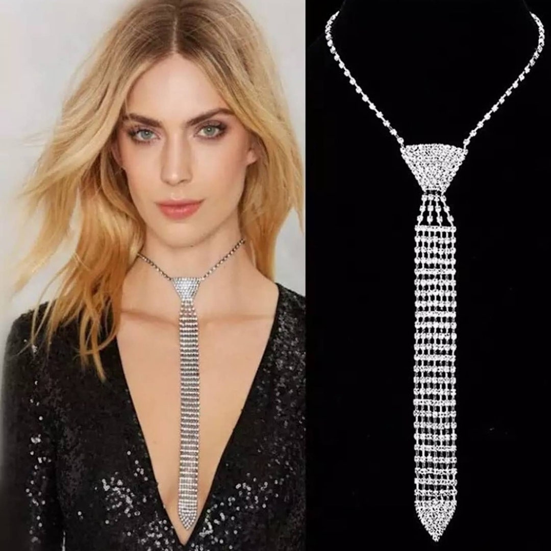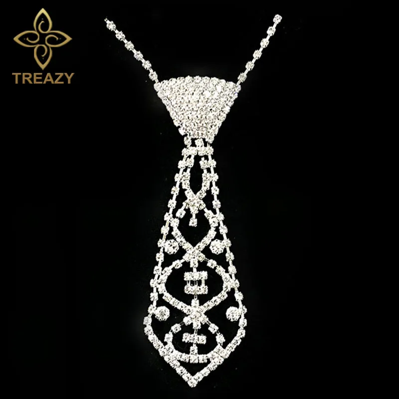 Aliexpress.com : Buy TREAZY Classic Crystal Rhinestone Neck Tie Necklaces Silver Color Long rhinestone neck tie