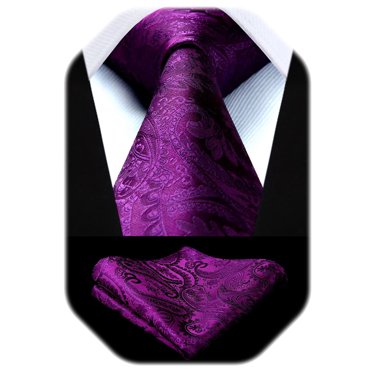 HISDERN Men Floral Ties Woven Classic 3.4" Necktie Set Formal tie Pocket Square for Wedding with manoble tie