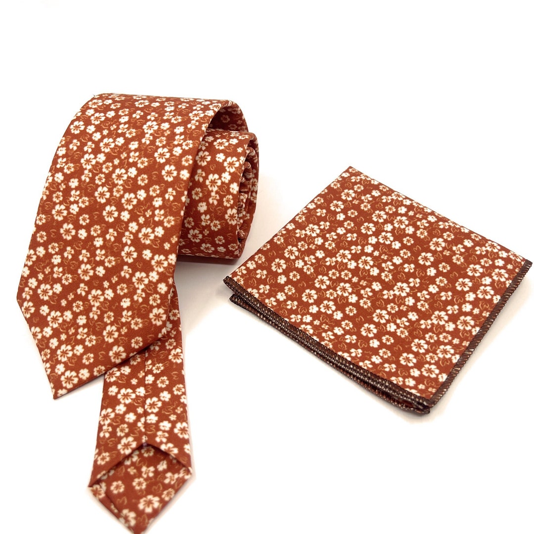 Burnt Orange Floral Necktie Mens Necktie Slim Necktie - Etsy necktie orange