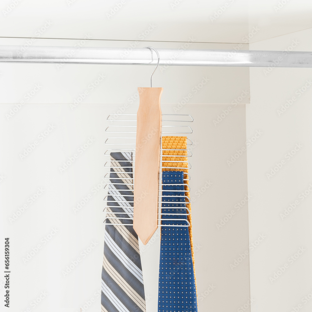 Variety of Fashionable Men Neckties with Striking Designs Hanging on a Vertical Tie and Belt neckties for tall guys