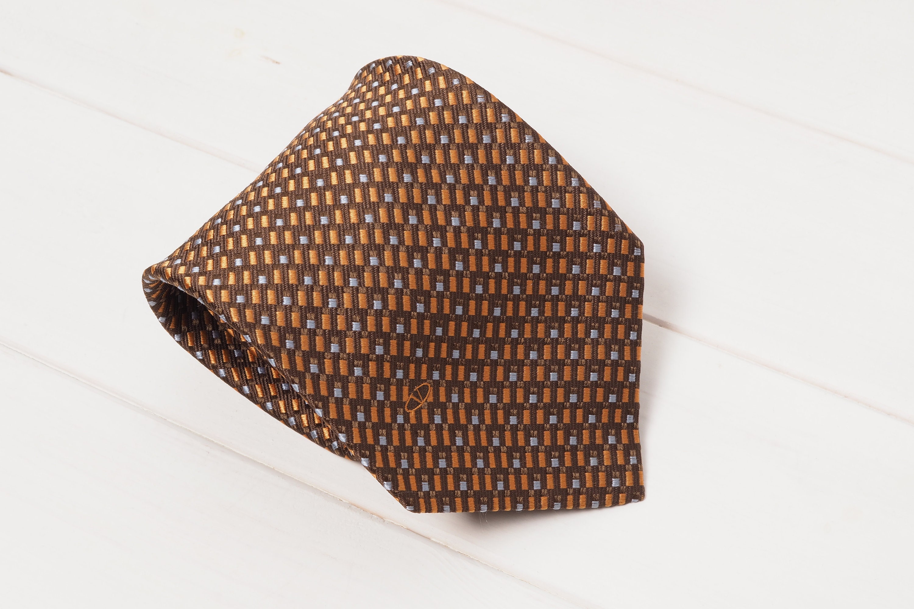 Valentino cravatte hand made silk tie Valentino brown silk tie Made in Italy Rust blue and cream
