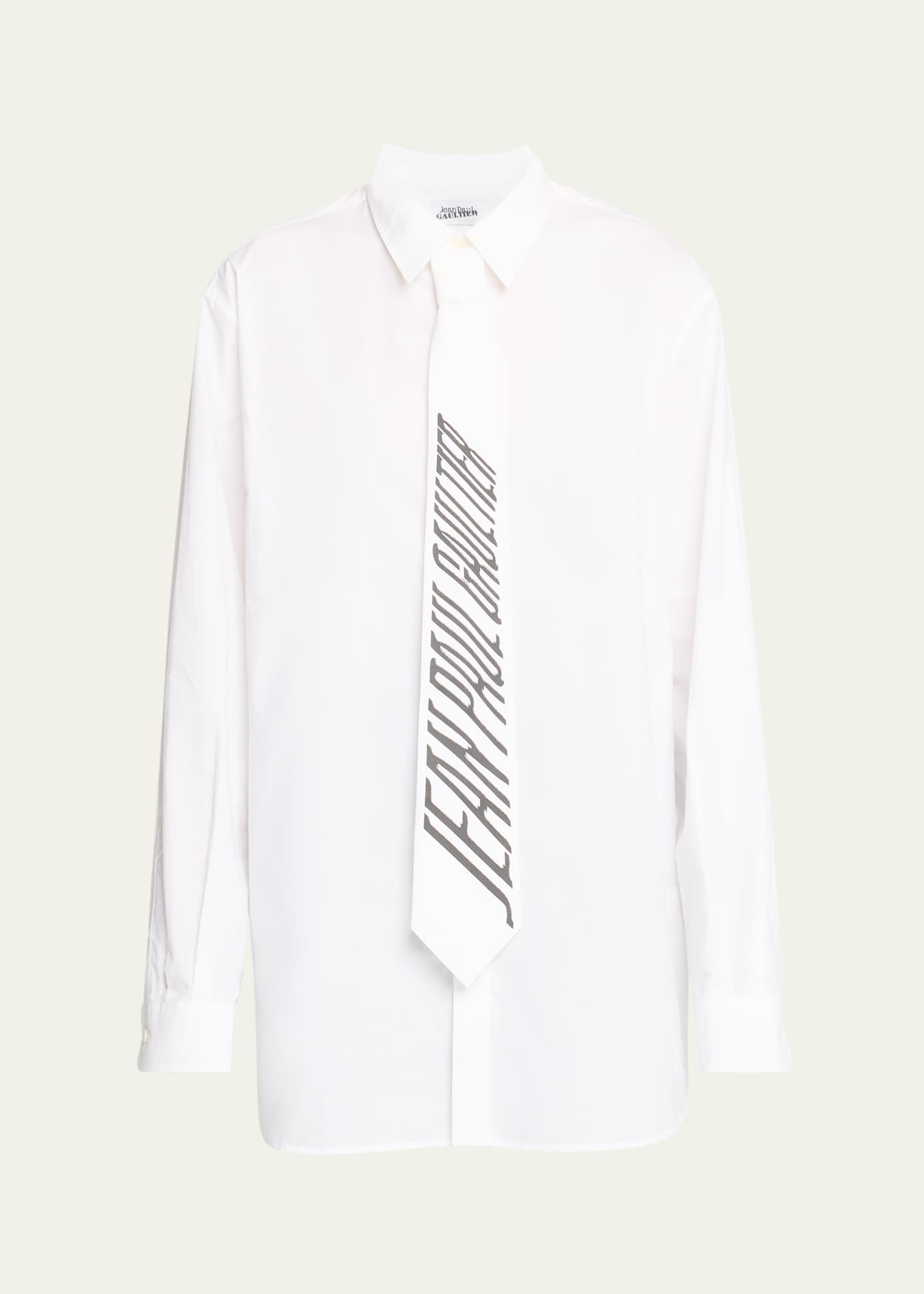 Jean Paul Gaultier Logo Neck-Tie Cotton Poplin Mini Shirtdress - Bergdorf Goodman gaultier tie