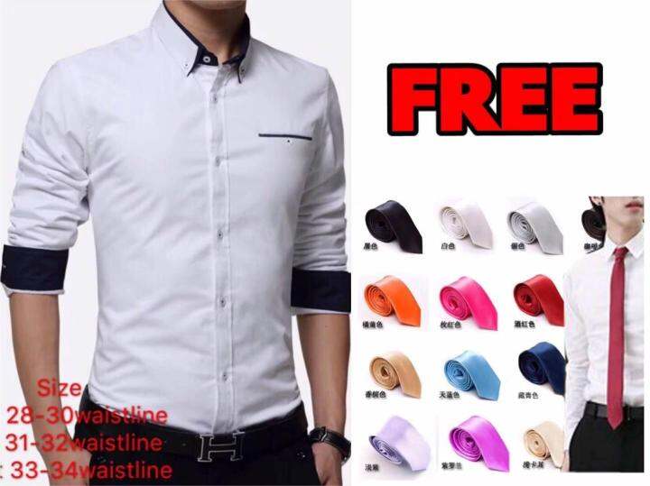 emw korean minimalist long slevees polo free necktie | Lazada PH necktie polo