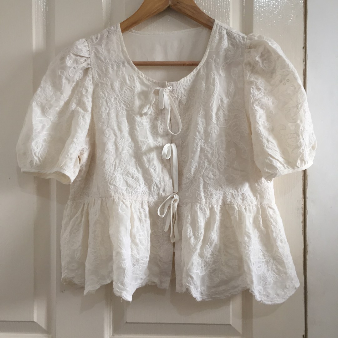 BKK lace coquette bow tie top, Women's Fashion, Tops, Blouses on Carousell bow tie top for women