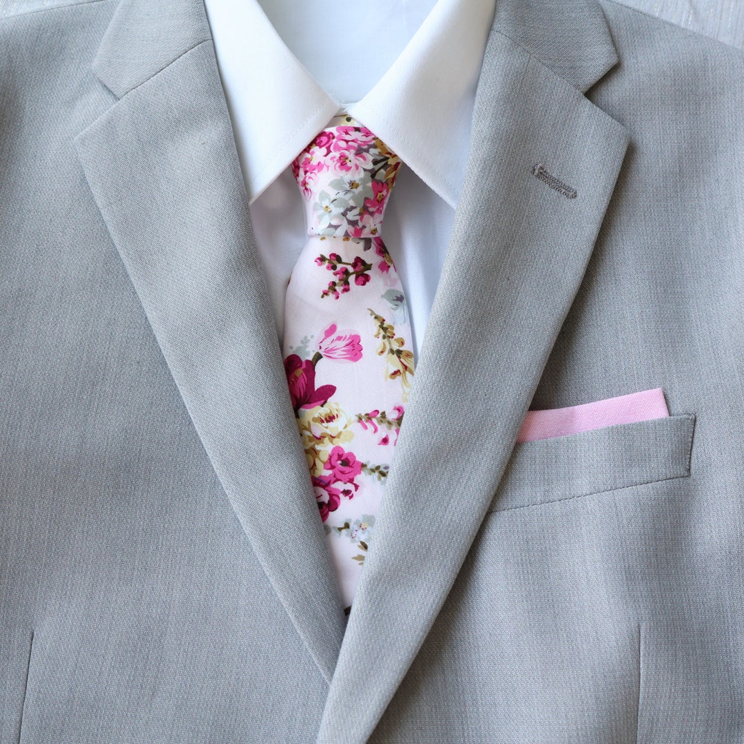 Pink Floral Mens Ties Sets Floral Tie and Pocket Square | Etsy