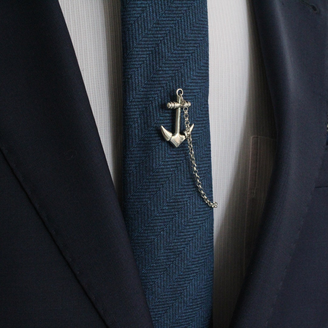 Anchor Tie Tack With Chain, Marine Tie Clip, Tie Bar, Hand Made Unique Design, Men's Wedding how to wear a tie tack with chain