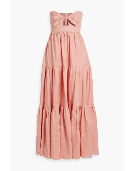 Zimmermann Andie Strapless Tie-front Tiered Linen Maxi Dress in Pink | Lyst zimmermann tie front dress